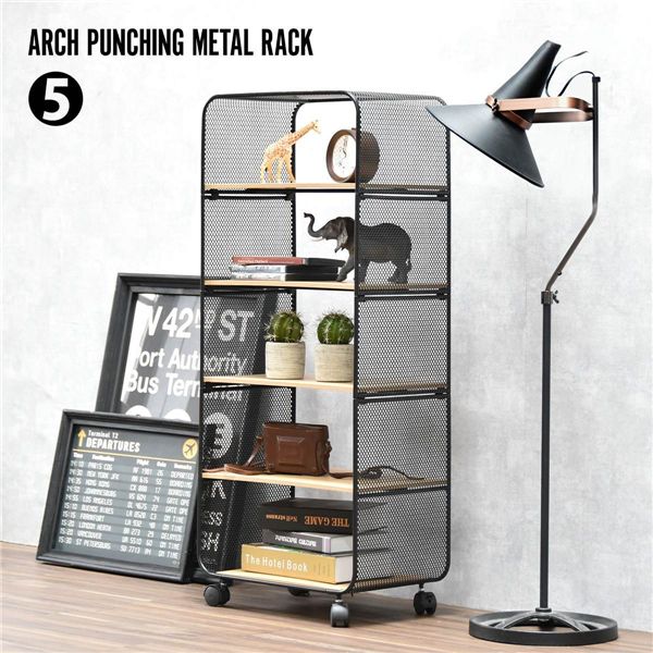 ブラック色のアーチとNA色の棚板とのコントラストが綺麗です。キャスターが付いているので、移動も簡単で、掃除をする時も便利です。飾り棚・本棚・趣味のコレクション飾りに便利です。