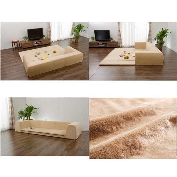 座面を折りたたむとソファ、座面を開くとカウチソファ。座面を開いて背もたれを倒して広げると寝ころびスタイル3つのスタイルでくつろげるソファ