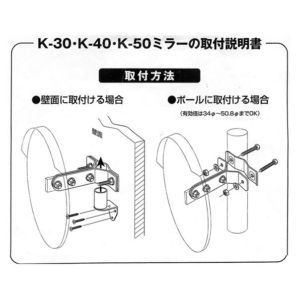 ●アクリル製なので軽くて、割れにくいミラーになります。壁・ポール用取付金具付き。