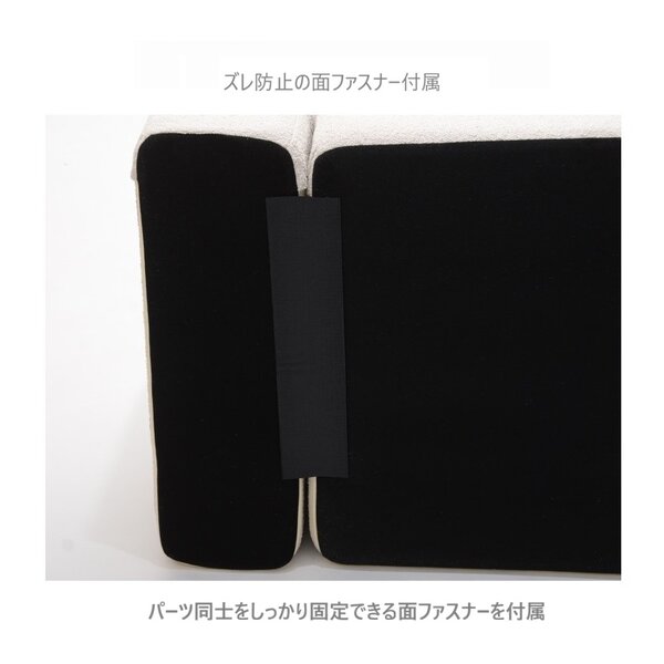組み合わせを自由に変えられるユニットソファ。本体・オットマンは座面にポケットコイルスプリングが入っているのでクッション性抜群です。もこもことした心地よい肌さわりのブークレ生地を使用