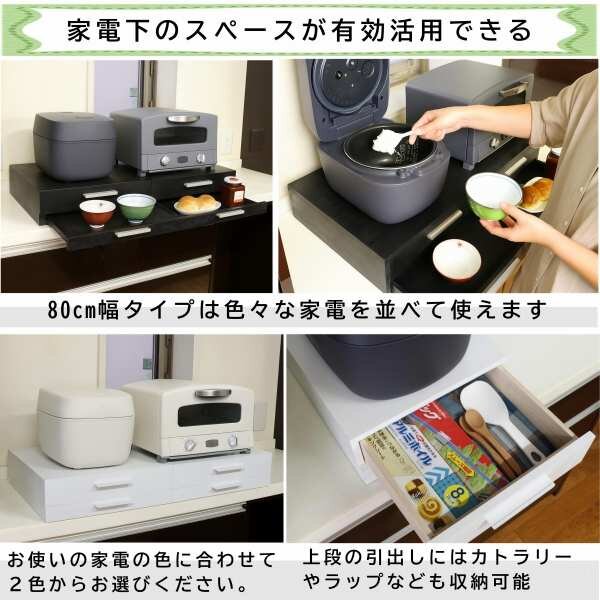 炊飯器やトースター以外のもジューサーや電気圧力鍋などお持ちの家電の下に敷くだけ簡単!スペースを有効活用できます。